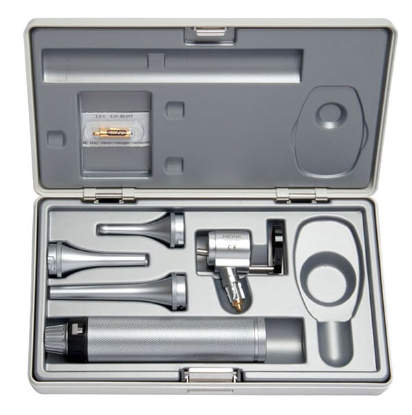 – Heine G100 atvira invazinė otoskopo galvutė (2,5 V arba 3,5 V) su halogeniniu apšvietimu (XHL Heine)