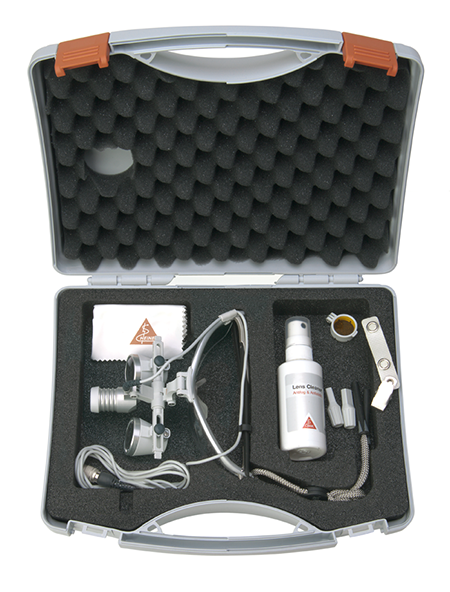 HEINE HR 2.5x 340mm Binokuliniai lęšiai ant galvos juostos su S-GUARD apsauga nuo purslų.
