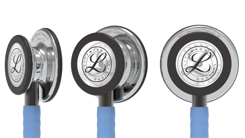 Littmann Classic III stethoscope 5959 Ceil Blue Mirror Finish Smoke Stem with name engraving and carrying case options This model constitutes the first important upgrade in Littmann stethoscopes in the past 18 years. Classic iii stethoscope brings new features in the design and technology used in Littmann stethoscopes, with double-sided chestpiece, double diaphragm, and improved tubing, while it retains the best characteristics of the traditional models. The acoustic sensitivity has been further